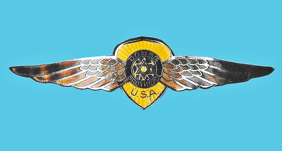 The following black, red and blue enamel radiator grille emblem was mounted on a chrome trim piece on the front of the hood above the grille on Series D19 and D22 Six cars for 1941: