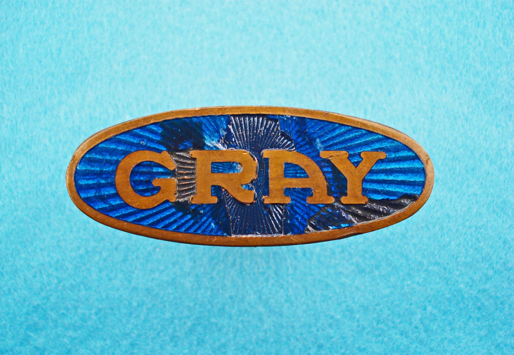 There are very few original period photos of early Gray motor cars clearly showing a radiator emblem. This, together with the fact that the Gray logos used in advertisements and catalogs in many cases appear different to the radiator emblems known to have been used at the time, make it difficult to be precise over the dates of use of early Gray emblems, even the sequence of use of these emblems.